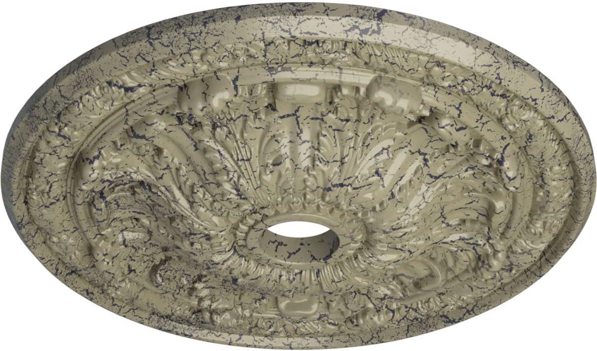 imageEkena Millwork CM30FL Flagstone Ceiling Medallion 30quotOD x 3 78quotID x 3 14quotP Fits Canopies up to 3 78quot Factory PrimedHandPainted Athenian Green Crackle